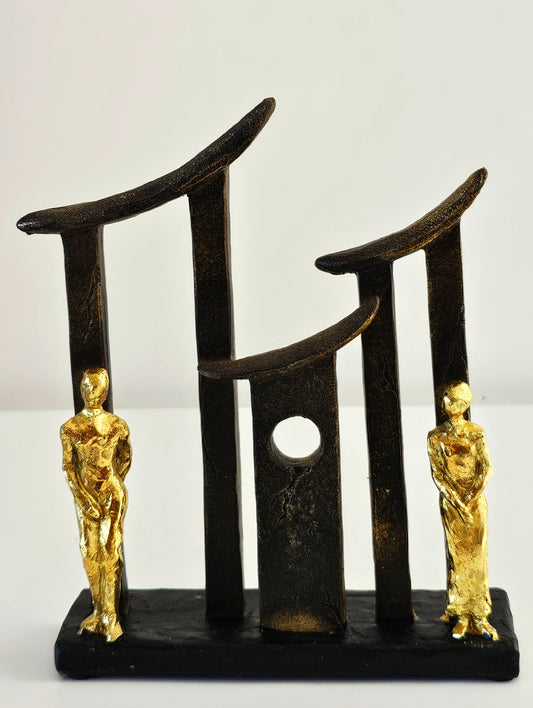 Elegant Gold and Grey Couple Figurine with Wall Design
