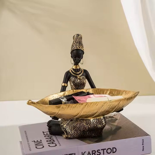 Elegant Gold Tabletop Tray with Elephant Figurines